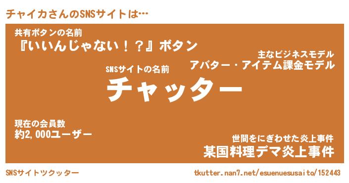 | 意味不明あだ名 | 『ペロリンチャイカ』『永久保存チャイカ』 |
