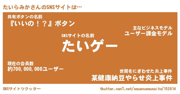 | ヘコむあだ名 | 『たいもー』『酢こんぶ』『たいっ子』 |