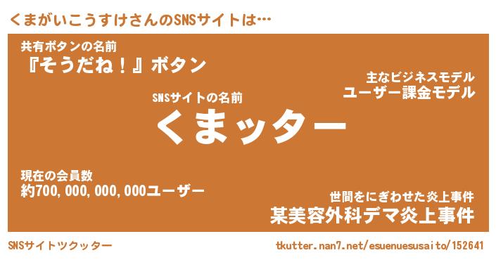 | 胡散臭い通販商品みたいなあだ名 | 『億万長者になれるブレスレット…その名も「くまがいこうすけ」』 |