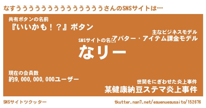 | ヒーロー風カッコイイあだ名 | 『スーパーナスウウウウウウウウウウウウウウ』 |