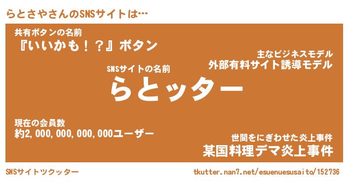 | 肩書あだ名 | 『らとさや社長』『らとさや国家主席』 |