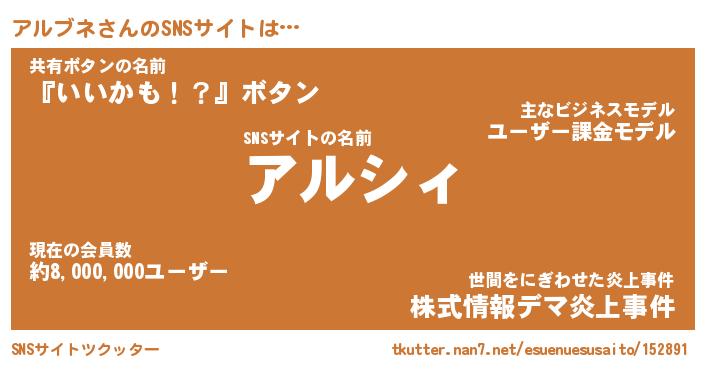 | 意味不明あだ名 | 『ペロリンアルブネ』『永久保存アルブネ』 |