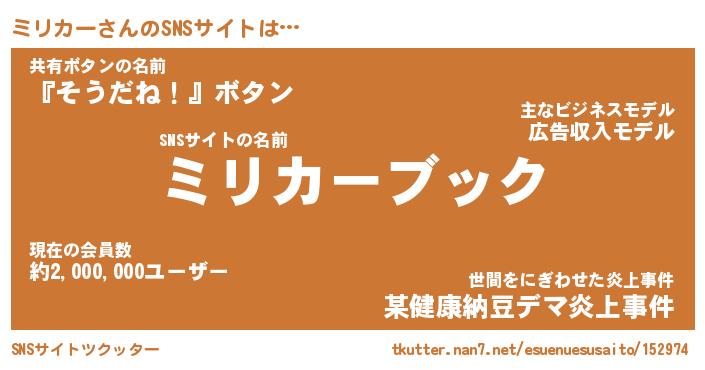 | 意味不明あだ名 | 『ペロリンミリカー』『永久保存ミリカー』 |