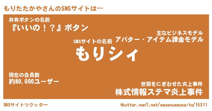 | 肩書あだ名 | 『もりたたかや社長』『もりたたかや班長』 |