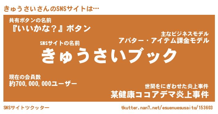 | ヒーロー風カッコイイあだ名 | 『スーパーキュウサイ』『幻影騎士キュ』 |