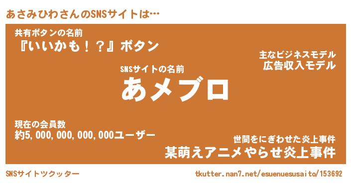 | ツイッター | あさみひわさんのツイッターID『katatsumuri_idle』 |