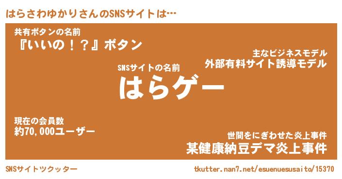 | ツイッター | はらさわゆかりさんのツイッターID『kikurage_nyan』 |