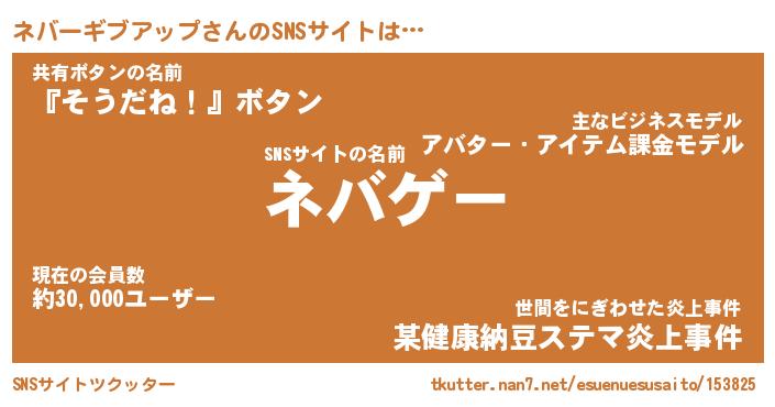 | 2回繰り返すあだ名 | 『ネバネバ』『ネネババ』『ねばねば』 |