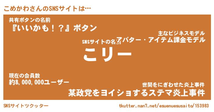 | 意味不明あだ名 | 『ペロリンこめかわ』『永久保存こめかわ』 |