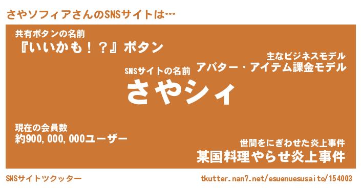| 胡散臭い通販商品みたいなあだ名 | 『必ず成功する霊験あらたかなお札…その名も「さやソフィア」』 |