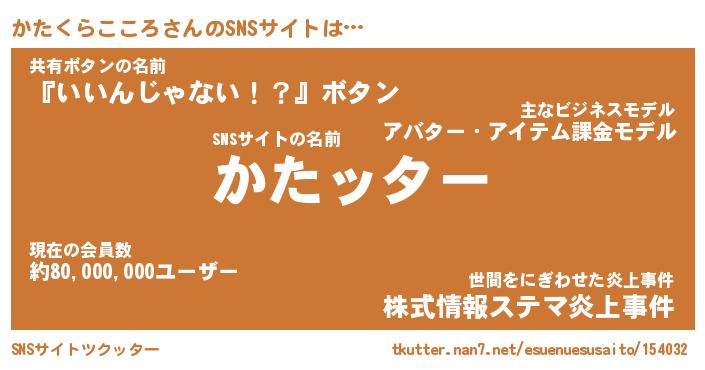 | 胡散臭い通販商品みたいなあだ名 | 『億万長者になれる霊験あらたかなお札…その名も「かたくらこころ」』 |