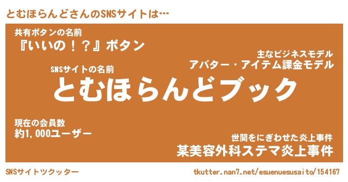 | 胡散臭い通販商品みたいなあだ名 | 『億万長者になれるブレスレット…その名も「とむほらんど」』 |
