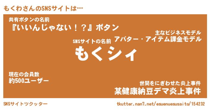 | ヘコむあだ名 | 『もくにゅー』『豆乳』『もくぷりん』 |