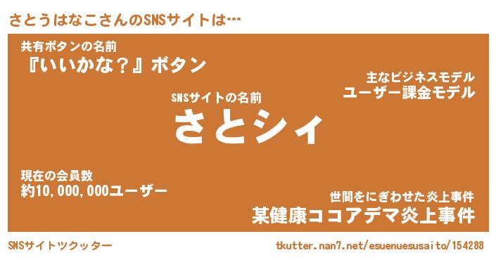 | ヒーロー風カッコイイあだ名 | 『スーパーサトウハナコ』『幻影騎士サト』 |