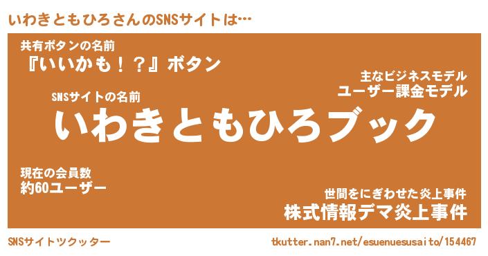 | 肩書あだ名 | 『いわきともひろ店長』 |