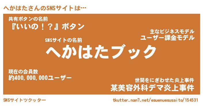 | 意味不明あだ名 | 『ペロリンへかはた』『永久保存へかはた』 |