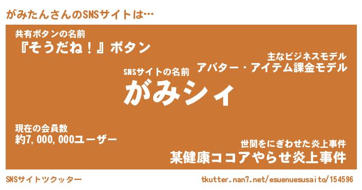| 胡散臭い通販商品みたいなあだ名 | 『必ず成功する霊験あらたかなお札…その名も「がみたん」』 |