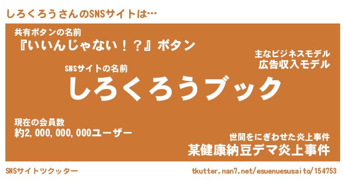 | 肩書あだ名 | 『しろくろう社長』『しろくろう大統領』 |