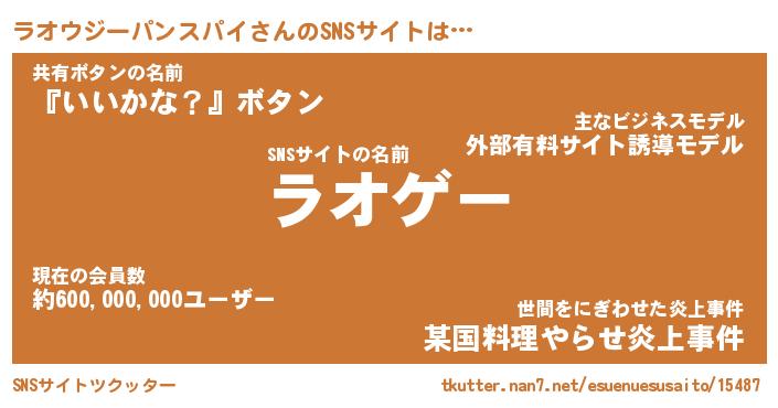 | ヘコむあだ名 | 『ラオふぇ~』『なまこ酢』 |