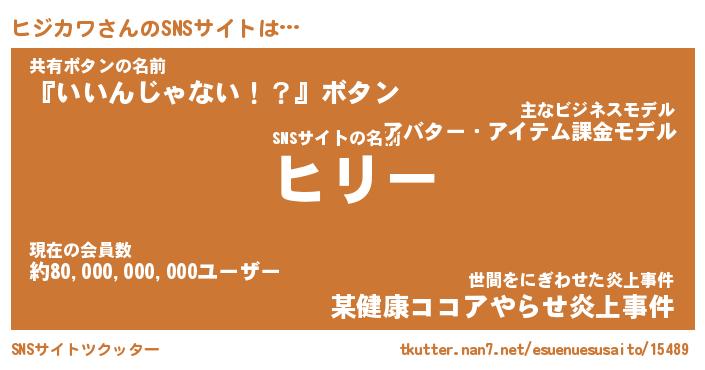 | ファンタジー風あだ名 | 『ヒジフェル』『エターナルヒジカワー』 |
