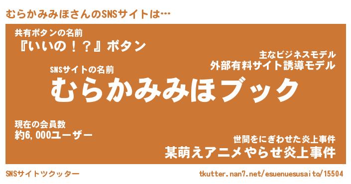 | 男性向けラノベタイトル風あだ名 | 『ムラカミミホアートオンライン』 |