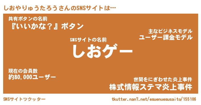 | 胡散臭い通販商品みたいなあだ名 | 『必ず成功する霊験あらたかなお札…その名も「しおやりゅうたろう」』 |
