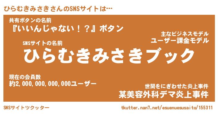 | 胡散臭い通販商品みたいなあだ名 | 『億万長者になれるブレスレット…その名も「ひらむきみさき」』 |