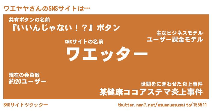 | ポケモン風あだ名 | 『ワエチュウ』『ワエヤダネ』 |