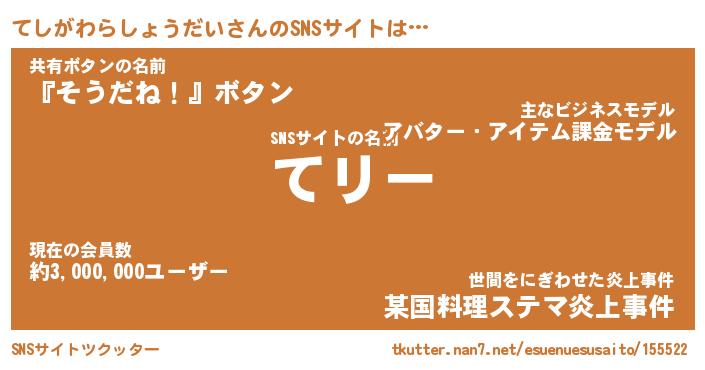 | 男性向けラノベタイトル風あだ名 | 『てしがわらしょうだいの憂鬱』 |