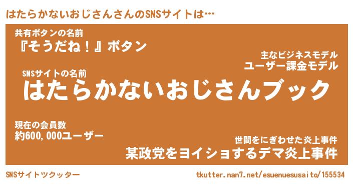 | ツイッター | はたらかないおじさんさんのツイッターID『namakemono_kun』 |