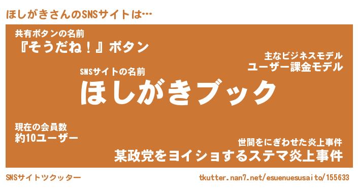 | 肩書あだ名 | 『ほしがき社長』『ほしがき総理大臣』 |
