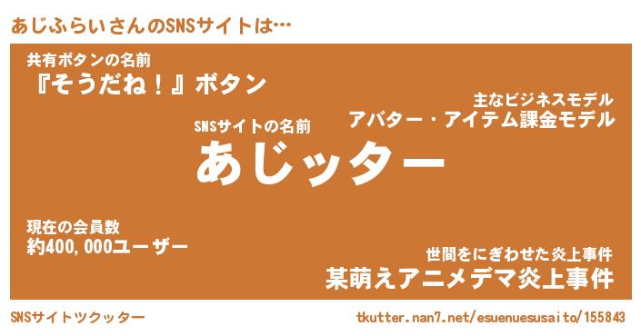 | ファンタジー風あだ名 | 『アジフェル』『エターナルアジフライー』 |