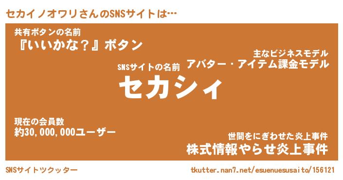 | 胡散臭い通販商品みたいなあだ名 | 『必ず成功する霊験あらたかなお札…その名も「セカイノオワリ」』 |