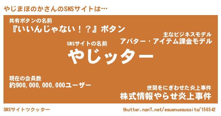 | 胡散臭い通販商品みたいなあだ名 | 『億万長者になれるブレスレット…その名も「やじまほのか」』 |