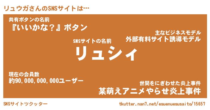 | 肩書あだ名 | 『リュウガ社長』『リュウガ大統領』 |