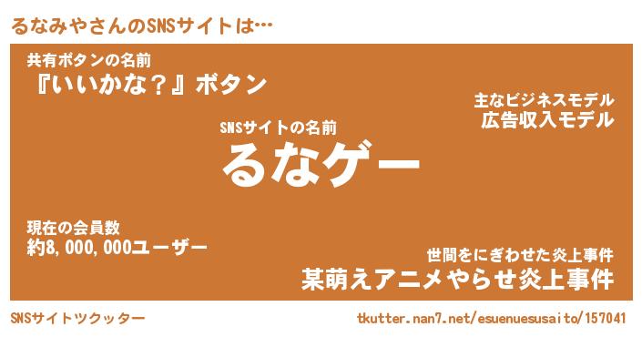 | 意味不明あだ名 | 『ペロリンるなみや』『永久保存るなみや』 |
