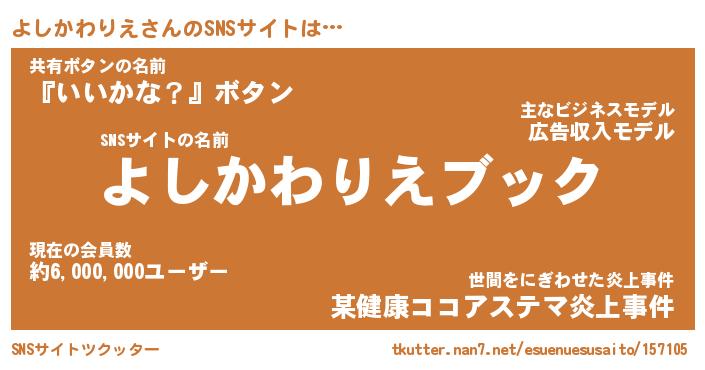 | 肩書あだ名 | 『よしかわりえCEO』『よしかわりえ大統領』 |