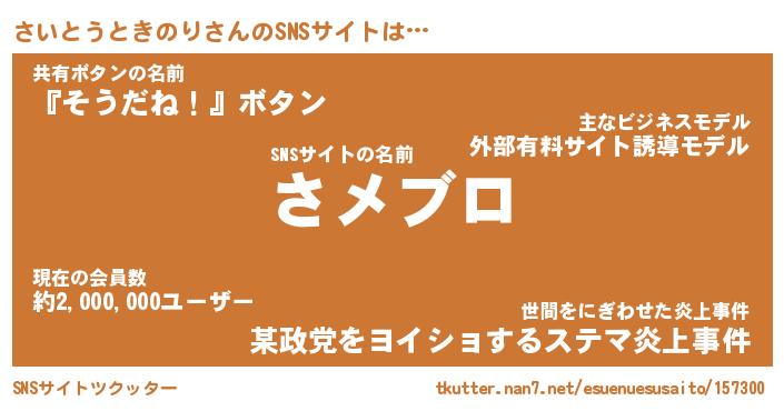 | 女子向けラノベタイトル風あだ名 | 『さいとうときのり姫と円卓の騎士』 |