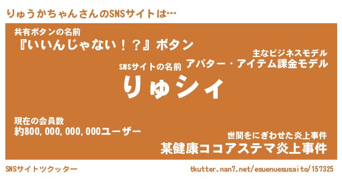 | ツイッター | りゅうかちゃんさんのツイッターID『konnyaku_kun』 |