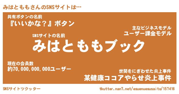 | 胡散臭い通販商品みたいなあだ名 | 『億万長者になれる霊験あらたかなお札…その名も「みはともも」』 |