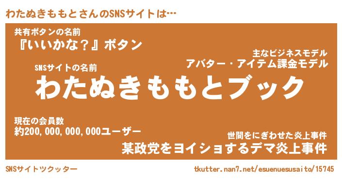 | 欧米人風あだ名 | 『マイケルわたぬきももと』 |