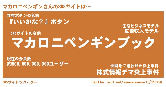 | 胡散臭い通販商品みたいなあだ名 | 『億万長者になれる水晶球…その名も「マカロニペンギン」』 |