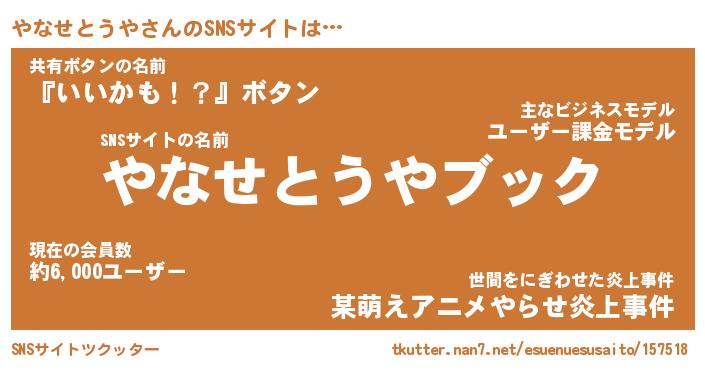 | 男性向けラノベタイトル風あだ名 | 『ヤナセトウヤアートオンライン』 |