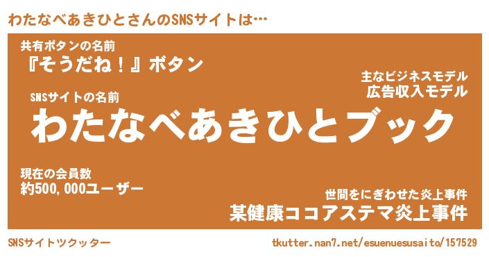 | 肩書あだ名 | 『わたなべあきひとCEO』 |