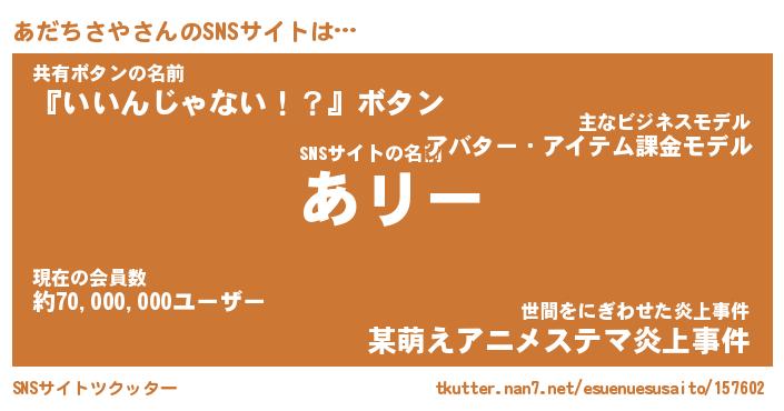 | 肩書あだ名 | 『あだちさや社長』『あだちさや総理大臣』 |