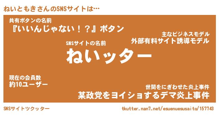 | 肩書あだ名 | 『ねいともきCEO』『ねいともき総理大臣』 |
