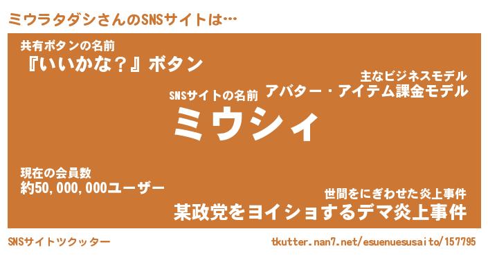 | ヘコむあだ名 | 『ミウもー』『なまこ酢』 |