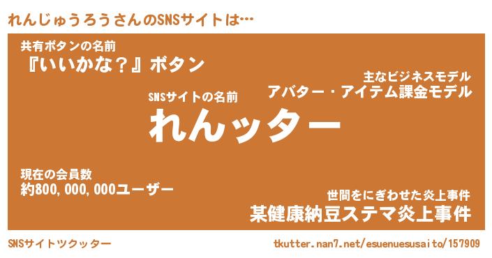 | 男性向けラノベタイトル風あだ名 | 『レンジュウロウアートオンライン』 |