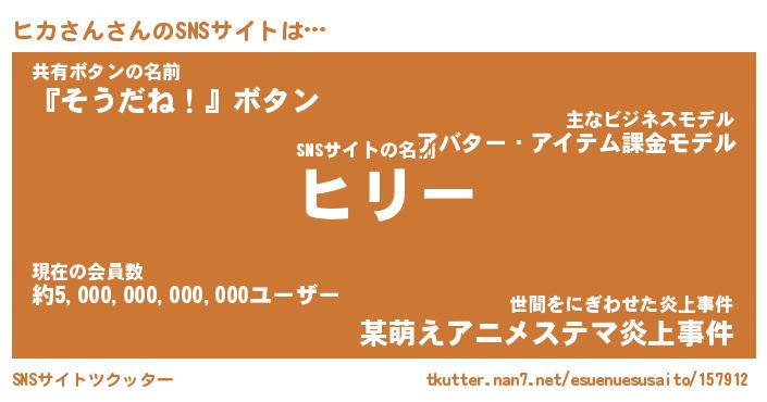 | 自動車の名前っぽいあだ名 | 『プリヒカ』『ヒクア』『ヒント』 |