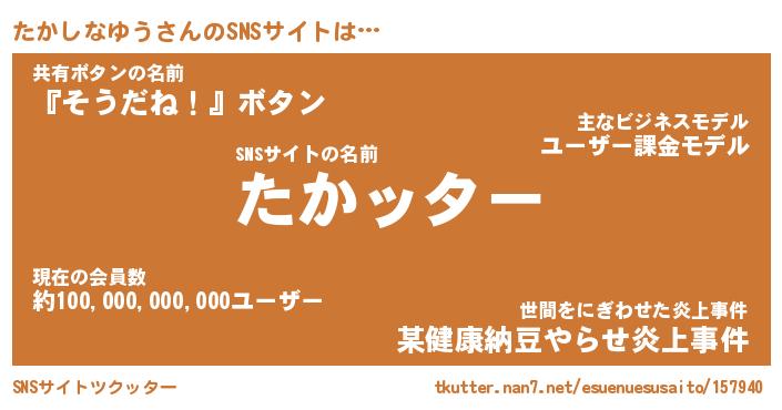 | 肩書あだ名 | 『たかしなゆう社長』『たかしなゆう塾長』 |